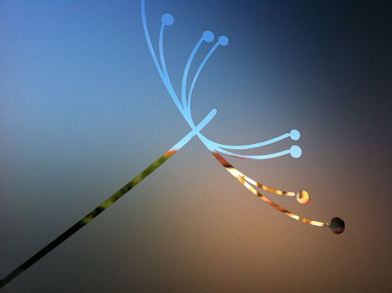 Üvegfeleületek dekorálására. A homokfúvott hatású üvegfóliát tudjuk nyomtatni és vágni is.